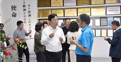 9月4日,國家知識產權局黨組成員、副局長李眈陸率國家知識產權局戰略規劃司副司長劉菊芳等領導一行5人到大理州企業家協會理事單位——云南歐亞乳業調研指導工作,云南省市場監管局副局長夏生安、大理州副州長王武、大理州市場監管局局長茶向金等領導陪同調研。調研組聽取了公司副總經理楊永莉關于公司發展歷程、奶源建設、生產加工、市場開發、品牌打造等工作情況匯報,深入了解公司在新品研發及工藝提升方面所取得的成效,勉勵公司要持續強化技術創新能力,推進新技術、新方法、新思路與傳統特色產業深度融合。對于公司獨特的綠色、有機娟姍牛奶