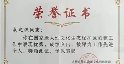 在國家級大理文化生態(tài)保護區(qū)創(chuàng)建10周年之際,為激勵全州非遺保護部門、非遺工作者、非遺繼承人不斷創(chuàng)新創(chuàng)造,為非遺事業(yè)做出更大的貢獻,近日,大理州文化和旅游局大張旗鼓的表彰了一批在全州非遺工作中成績突出的先進典型。大理州企業(yè)家協(xié)會理事單位——賓川縣康莊農(nóng)業(yè)生態(tài)觀光開發(fā)有限公司董事長康建洪榮獲“國家級大理文化生態(tài)保護區(qū)創(chuàng)建工作先進個人”稱號受到表彰。康建洪于2008年1月在賓川縣仁和村創(chuàng)建了賓川古建真空磚瓦廠,他憑著對磚瓦事業(yè)的一份鐘愛,在改進古建磚瓦燒制技術的同時,引進了劍川木雕工藝人才,將木雕傳統(tǒng)工藝與傳統(tǒng)