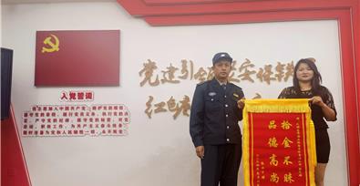 有一種美德叫拾金不昧,有一種驚喜叫失而復(fù)得,俯身拾起的是美德,昂首送還的是真心。大理州企業(yè)家協(xié)會副會長單位——大理志昂保安服務(wù)有限責(zé)任公司派駐大理州實驗幼兒園保安員黎光雄用行動傳遞正能量,雖是舉手之勞,卻溫暖人心。5月2日,黎光雄在上班途中撿到女士手提包一個,內(nèi)有現(xiàn)金1800余元,多張銀行卡及身份證等重要物品,在原地等待多時不見失主后交至大理市公安局太和派出所報案處理。經(jīng)民警聯(lián)系,最終找到了失主,在核實身份后將物品歸還給了失主。5月11日,失主來到公司將一面寫有“品德高尚,拾金不昧”的錦旗送到黎光雄的手中