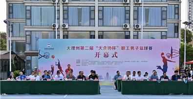 7月9日,由大理州企業(yè)家協(xié)會主辦,大理州總工會、大理州民族宗教事務(wù)委員會、大理州退役軍人事務(wù)局、大理經(jīng)濟技術(shù)開發(fā)區(qū)總工會、大理佳利集團、祥云縣建材(集團)、大理州建投集團協(xié)辦的第二屆“大企協(xié)杯”職工男子籃球賽在大理公館籃球場隆重開幕。大理州總工會常務(wù)副主席李福禧、大理州工信局副局長自永康、大理州民政局副局長晁子清、大理州民族宗教事務(wù)委員會副主任吳文光、大理州退役軍人事務(wù)局副局長李斌、大理經(jīng)濟技術(shù)開發(fā)區(qū)總工會副主席李春、大理州企業(yè)家協(xié)會會長趙中柱、大理州企業(yè)家協(xié)會常務(wù)副會長馬建國、大理州企業(yè)家協(xié)會監(jiān)事長李永