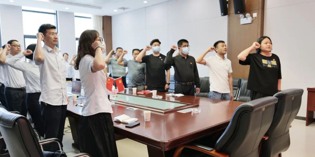 “我志愿加入中國共產黨,擁護黨的綱領……”與會全體黨員共同舉起右拳,面對黨旗莊嚴宣誓,鏗鏘有力的誓言表達了對黨的忠誠、熱愛和聽黨話、跟黨走的堅定決心。