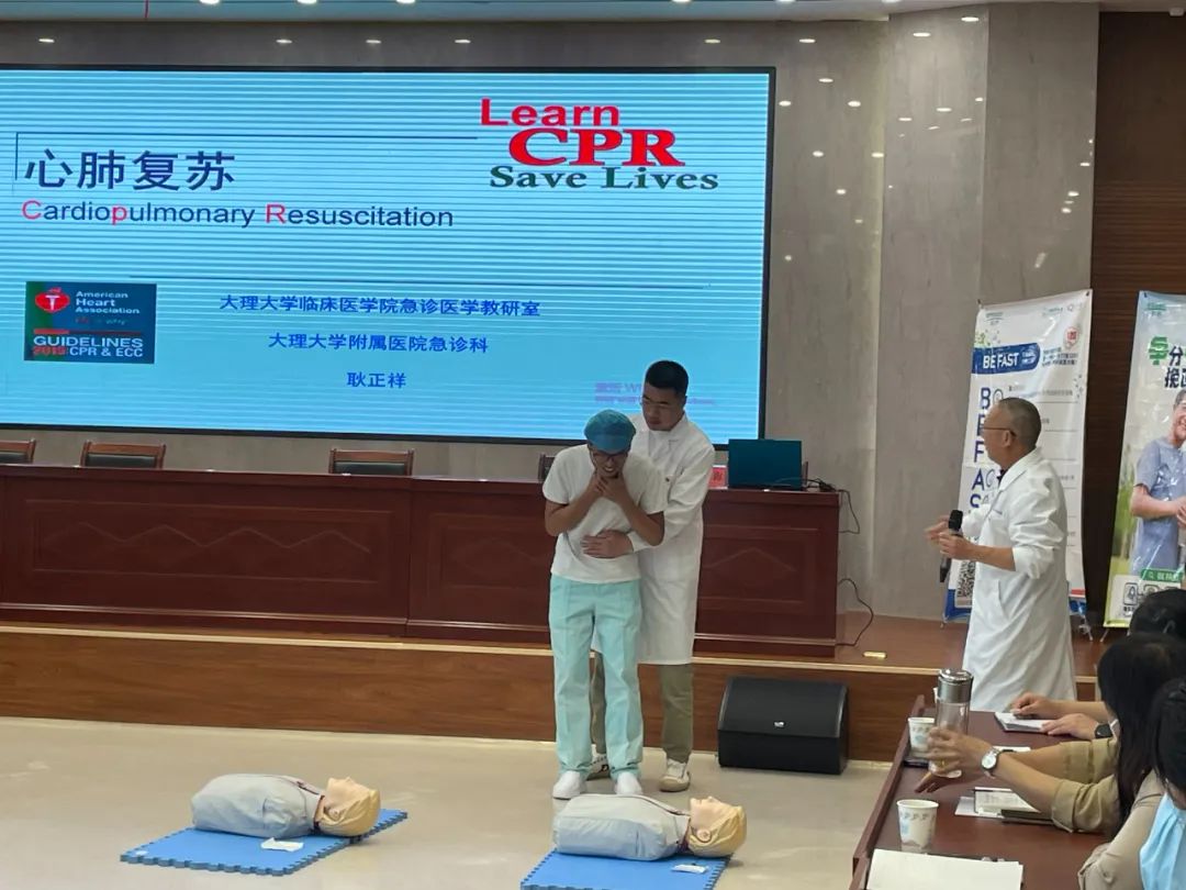 其次,大理大學(xué)第一附屬醫(yī)院內(nèi)科一支部及急診科人員進(jìn)行心肺復(fù)蘇演示。