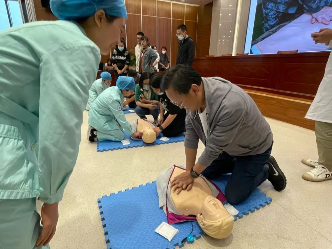 活動分三個階段進(jìn)行,首先附屬醫(yī)院各相關(guān)科室醫(yī)師分別從ACS癥狀、體征及心臟病早期癥狀辨識、高血壓的防治、急性腦卒中識別與預(yù)防、創(chuàng)傷現(xiàn)場急救注意事項、心肺復(fù)蘇,海姆立克法等五個方面進(jìn)行了培訓(xùn)講解,并現(xiàn)場對各公司人員提出的問題進(jìn)行了解答。
