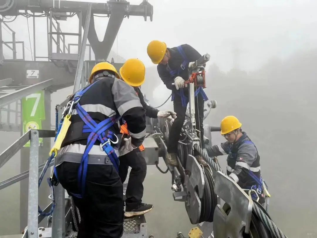 在集中開展景區節前索道、景區旅游專線客運車、景區道路大保養、大排查、大檢查工作中,為確保節前“體檢”工作按質按量順利完成,9月5日至8日,雞足山景區索道經營部和旅游專線客運車隊80多名員工克服多雨、大霧、寒冷的多變天氣,采取每天中午12時至夜間23時開展排查、檢查和保養工作,集中對站內設備的V型皮帶張緊系統、推車器總承及支架輪襯的更換,輪胎氣壓檢查和設備清潔等(共10個大項、190多個小項) 等項目進行檢查維護保養及更換。