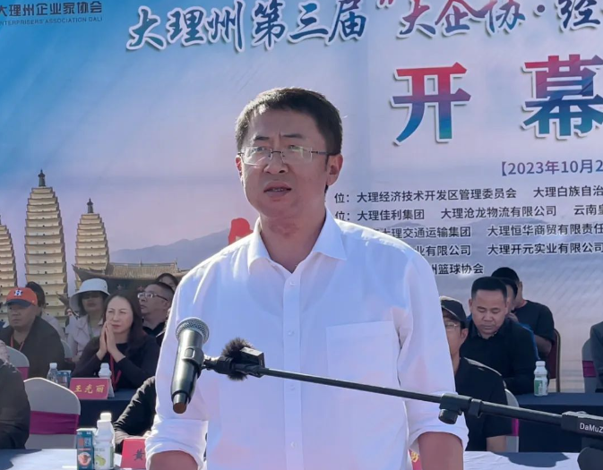 大理經開區黨群工作部部長、總工會主席劉旺在致辭中表示,舉辦“大企協·經開杯”職工男子籃球賽的目的,就是為了全面提高全區干部職工素質,構建健康、文明的政企文化氣氛,豐富職工的業余文化生活,以當好主人翁、建工新時代。希望全體參賽運動員發揚“激情執著、競合共贏”的團隊精神和“友誼第一、比賽第二”的體育精神,賽出道德風尚、賽出團隊風采、賽出團結友誼,全面展示大理經開區政企團隊的精神面貌和文化風采。