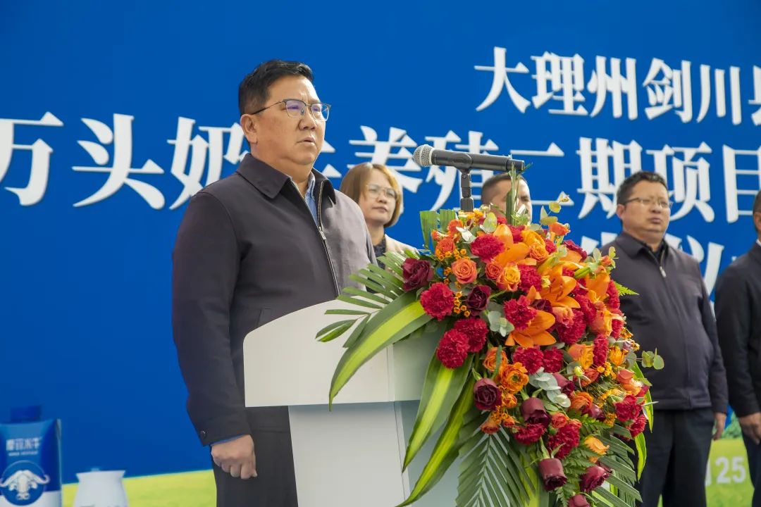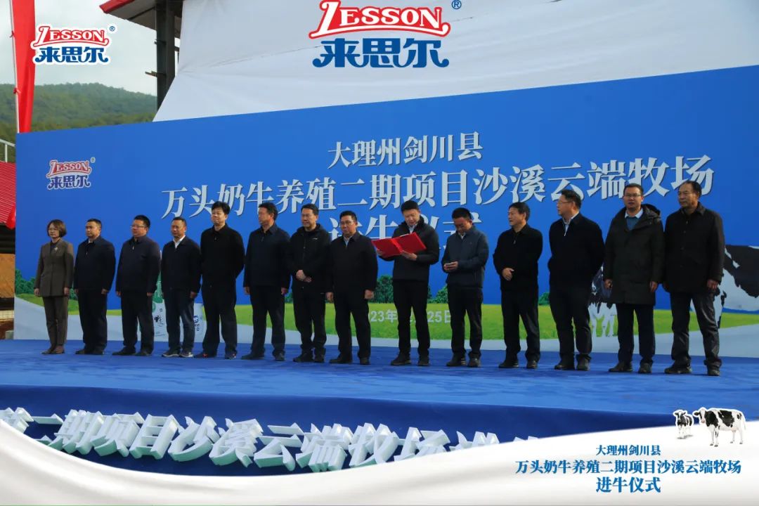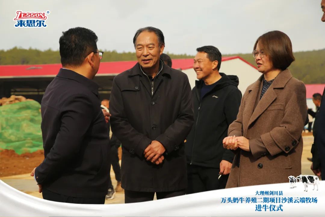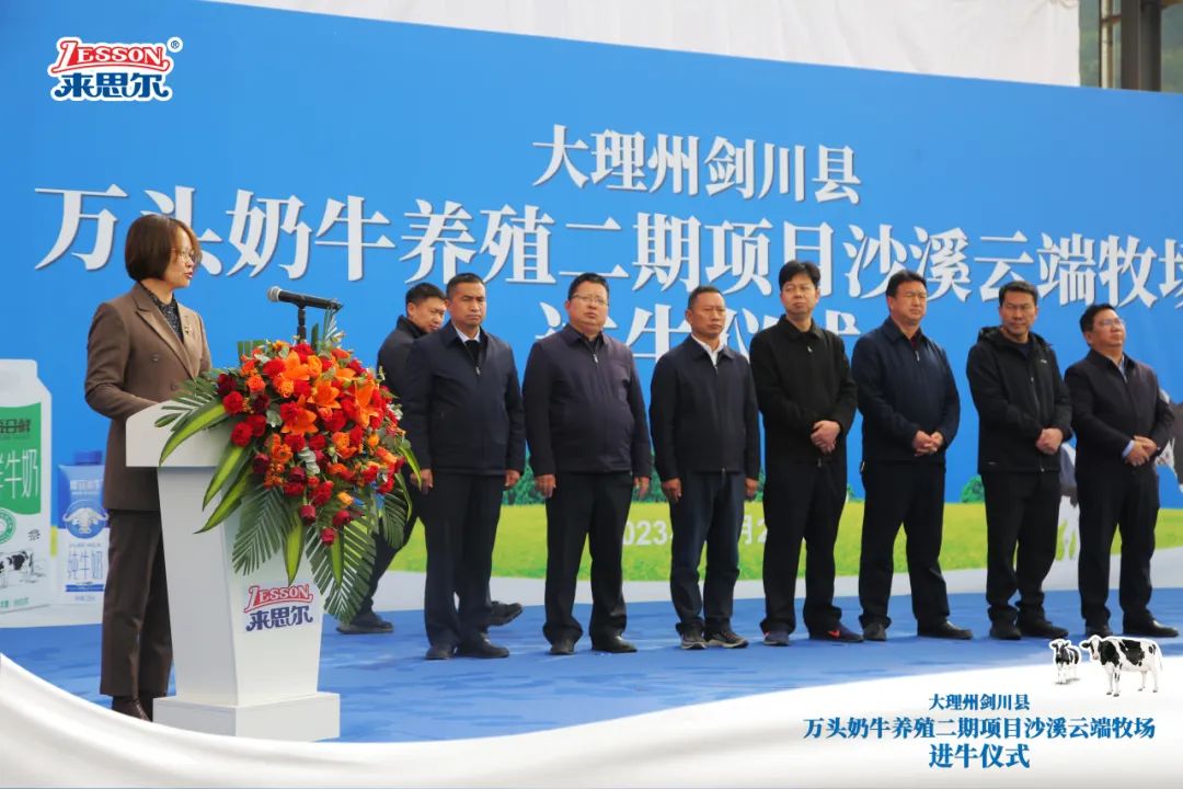 為認真貫徹落實省、州黨委、政府加快推進大理乳業高質量發展的決策部署,以萬頭牧場項目為契機全力推動全州乳產業高質量快速發展。12月25日,大理州企業家協會理事單位——來思爾乳業沙溪云端牧場進牛儀式在劍川縣沙溪鎮舉行。州政府黨組成員、一級巡視員吉向陽,州人大常委會副主任字云飛,州級各相關單位和劍川縣相關領導出席了儀式。來思爾乳業創始人、董事楊子彪出席了儀式,公司副總經理古繼芳作表態發言。