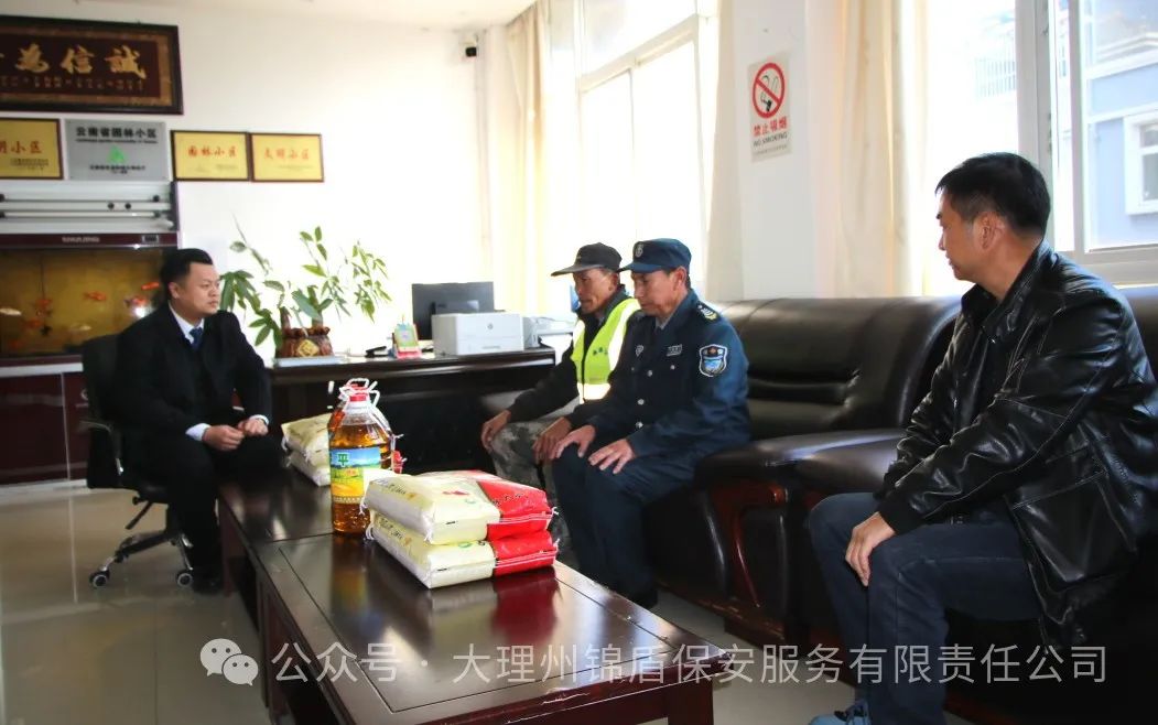春節將至,歲寒情暖。為貫徹習近平總書記關心關愛困難職工的指示精神,在2024年新春佳節來臨之際,大理州企業家協會副會長單位——大理州錦盾保安服務有限責任公司開展“迎新春、送溫暖”慰問活動,走訪慰問困難員工、一線值守保安員,送去公司的關心、關愛和新年的祝福。