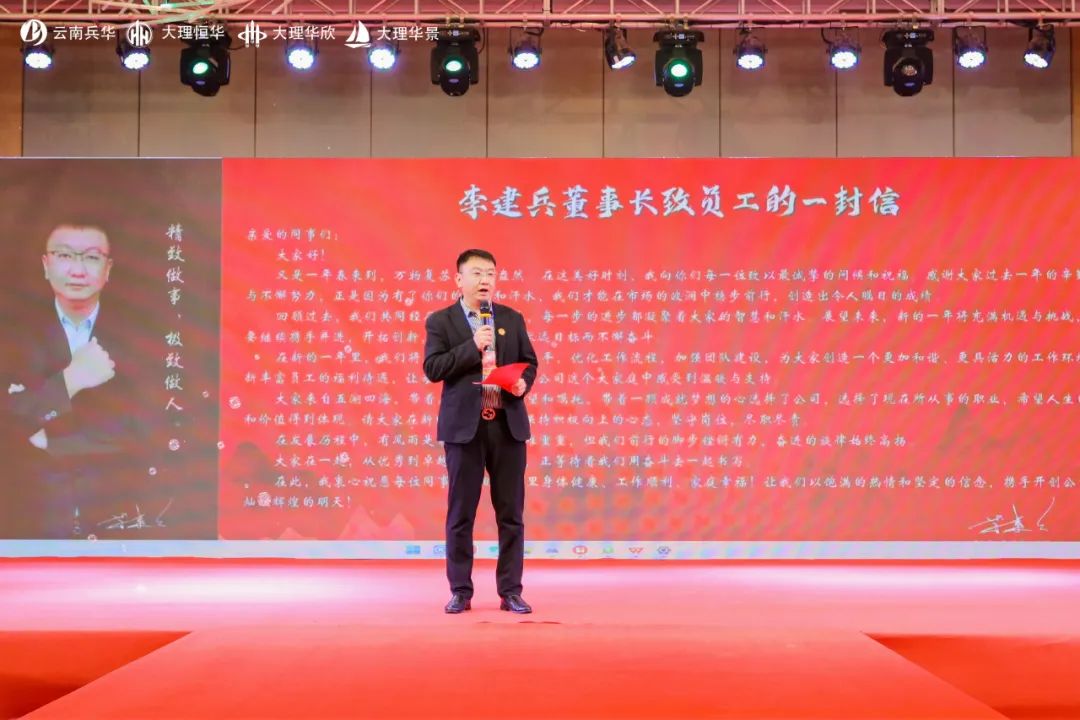 李建兵董事長在致辭中回顧了過去一年的輝煌成就,展望2024年的美好愿景,用“激流勇進,方顯英雄本色”、“乘風破浪,更知壯志凌云”、“路雖遠,行則將至”等話語激勵大家接續(xù)奮斗、砥礪前行、再創(chuàng)輝煌。