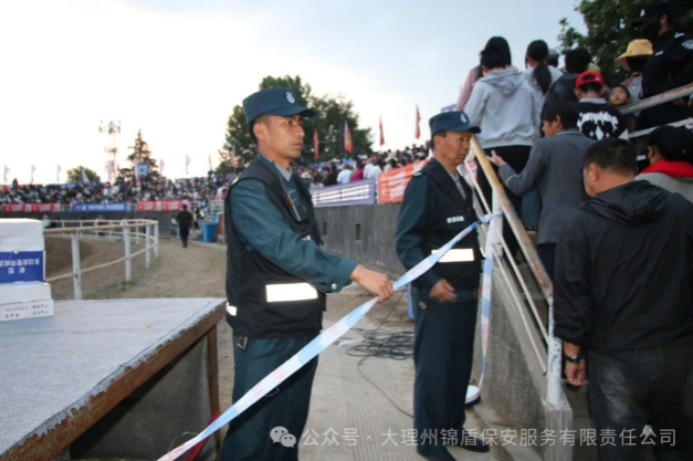 為保民族節平安,做到用心服務、全力以赴。4月23日至26日,公司保安員堅守崗位、認真履職,團結協作、勇于擔當,頂烈日冒酷暑連續工作,用飽滿的工作熱情、嚴明的組織紀律和規范的執勤行為,確保安保任務區域秩序井然、無安全事故發生。三月街期間,人流量大,持續執勤時間長,安保執勤工作任務繁重,保安員克服種種困難,迎難而上,圓滿完成“三月街民族節”的各項安保任務,得到公安機關的充分肯定。整個執勤過程中,保安員始終服從命令、聽從指揮,文明執勤、熱情服務,既按照安保工作方案的要求完成各項任務,又機動靈活地妥善處理各類突發事件,充分展示了大理錦盾保安的良好形象和務實有為的工作作風。