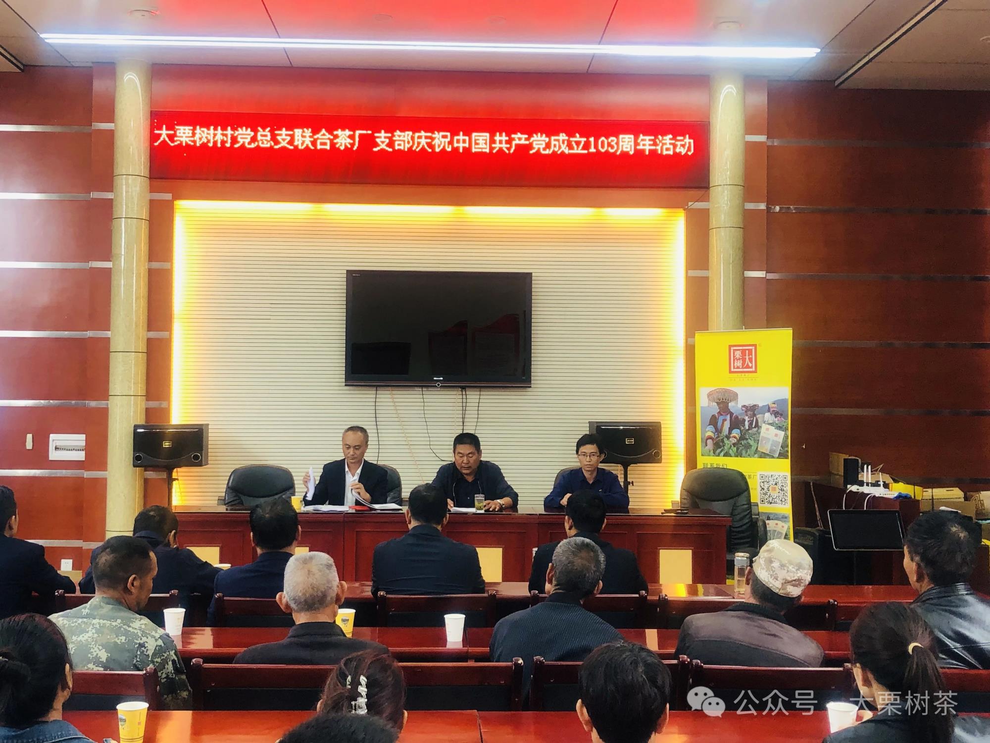 黨建引領筑忠魂,凝心聚力迎七一。為慶祝中國共產黨成立103周年,深入學習貫徹習近平新時代中國特色社會主義思想,進一步推動黨紀學習教育走深走實,7月1日,大理州企業家協會副會長單位——大栗樹茶廠黨支部聯合大栗樹村黨總支部開展主題黨日活動,紀念中國共產黨成立103周年。