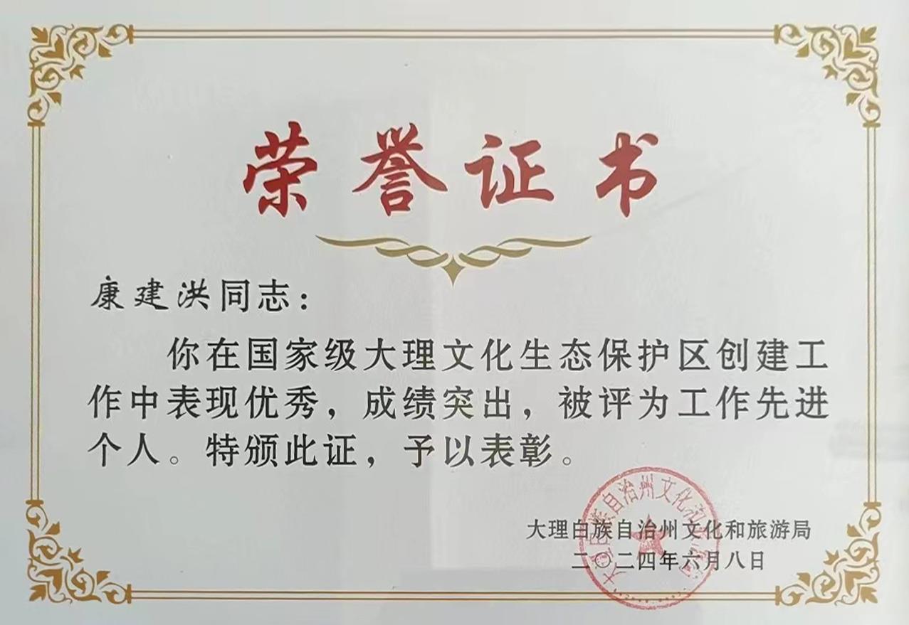康建洪獲“國家級大理生態文化保護區創建工作先進個人”稱號