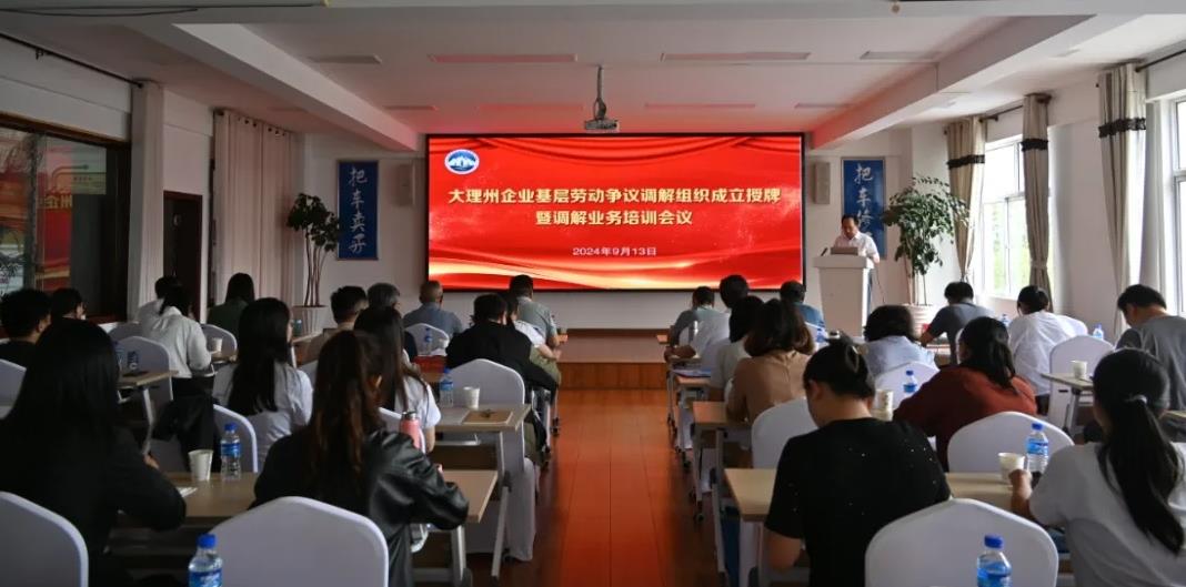 為進一步推動新形勢下勞動爭議調解工作,及時化解新形態領域的勞動爭議,全力構建和諧勞動關系,切實維護新形態勞動者合法權益,實現“小事不出企,矛盾不上交”,最大限度的把企業內部矛盾風險化解在基層,形成共建共治共享的現代企業治理新格局。9月13日下午,大理州企業基層勞動爭議調解組織成立授牌暨調解業務培訓會議在大理恒源汽車集團舉行。大理州、市人力資源和社會保障局,大理州、市總工會,大理州、市工商聯,大理經開區管委會相關領導和大理州首批成立企業勞動爭議調解委員會的11家企業調解組織領導共40多人參加了授牌和業務培訓。