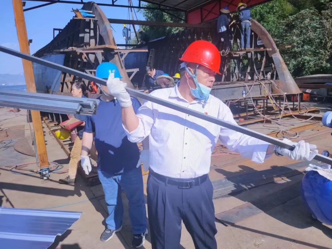 大理州企業家協會副會長單位——大理旅游集團黨委用黨建引領企業發展,不斷推進基層黨組織建設,在新能源船舶建造項目成立臨時黨支部,并積極發揮黨支部的戰斗堡壘作用和黨員先鋒模范作用,增強項目組的凝聚力、戰斗力,帶動全體項目成員沖鋒在前、創先爭優、全力以赴,以高質量、高標準、高效率推進項目建設。