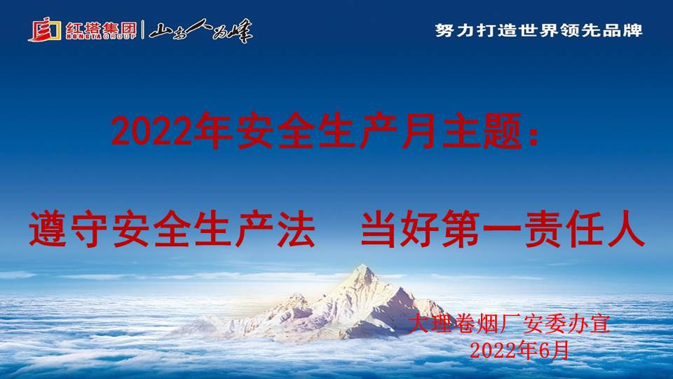 該公司制定《大理卷煙廠安全生產月活動方案》,全面落實上級部門關于安全生產月相關要求,根據方案時間節點安排部署“安全生產月”各項活動。在辦公樓、卷包、制絲、動力車間利用LED大屏宣傳,在廠區、庫區懸掛宣傳標語及利用宣傳欄宣傳,各科室、車間開展形式多樣的安全生產宣傳活動。開展“6.16”安全生產宣傳咨詢日活動,進行《防治職業病危害》宣傳欄宣傳,發放宣傳張貼畫、宣傳折頁、手冊,提供宣傳教育片并為各部門干部職工提供咨詢服務,組織觀看《生命重于泰山》電視專題片,組織干部職工參加中國煙草網絡學院 2022 年安全生產月“新安法知多少”知識競賽、云南中煙新媒體全員共創等活動,切實提高員工安全防范意識和防范能力。