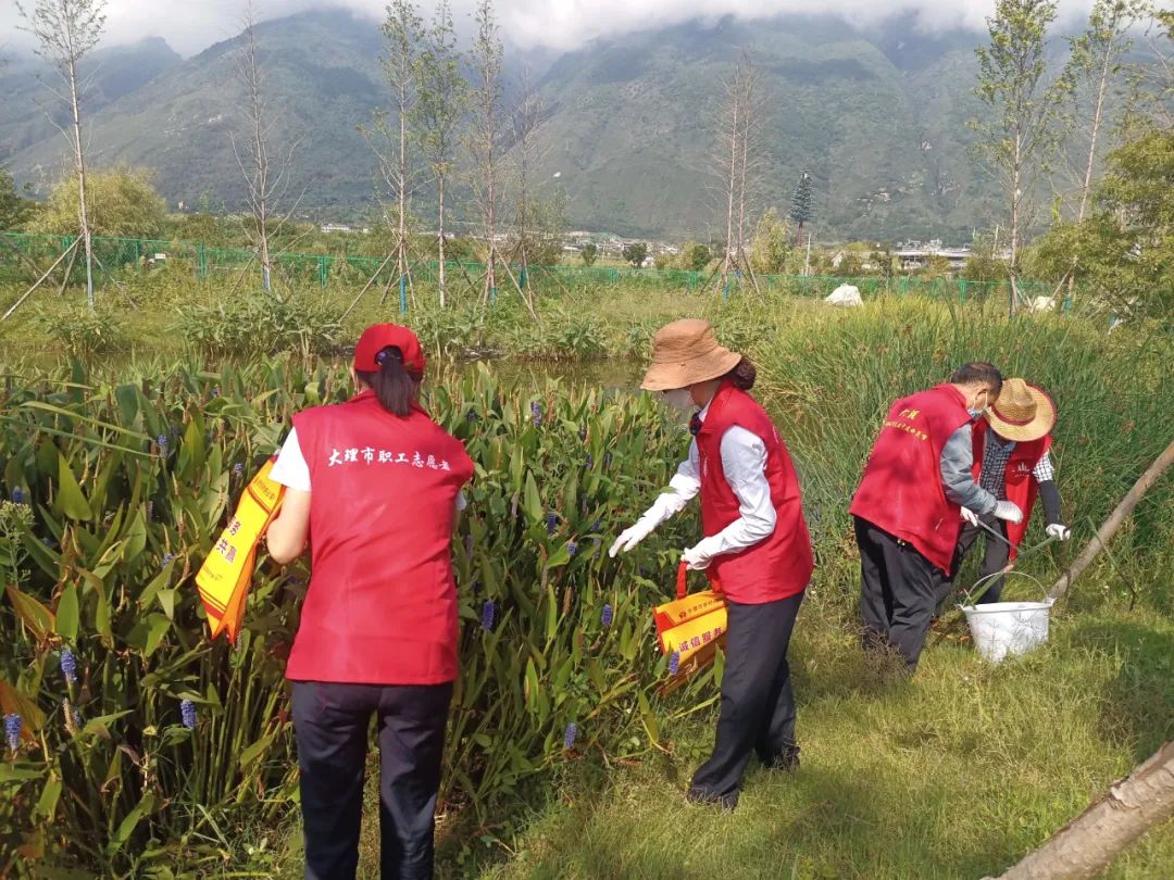 活動以“同心圓”城市基層黨建聯盟洱海保護為主要內容,在洱海生態廊道開展清理福壽螺和文明勸導活動。
