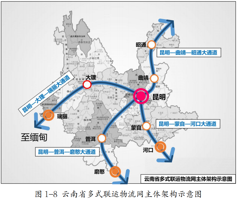 六個物流節點:彌渡物流節點、南澗物流節點、漾濞物流節點、云龍物流節點、洱源物流節點、劍川物流節點。
