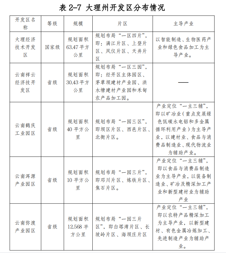 五個物流園區:大理物流園區、賓川物流園區、鶴慶物流園區、永平物流園區、巍山物流園區。