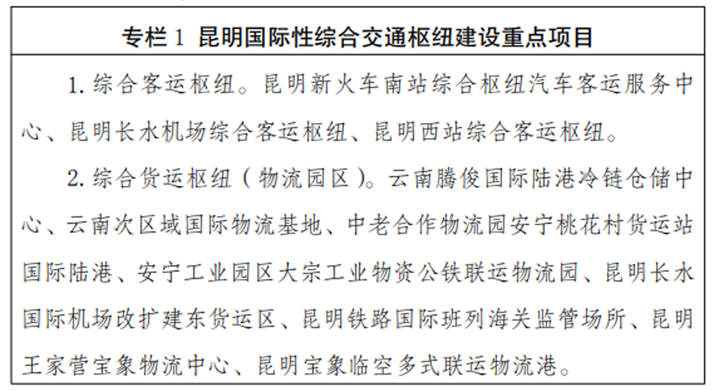 重點(diǎn)建設(shè)昆明國際性綜合交通樞紐