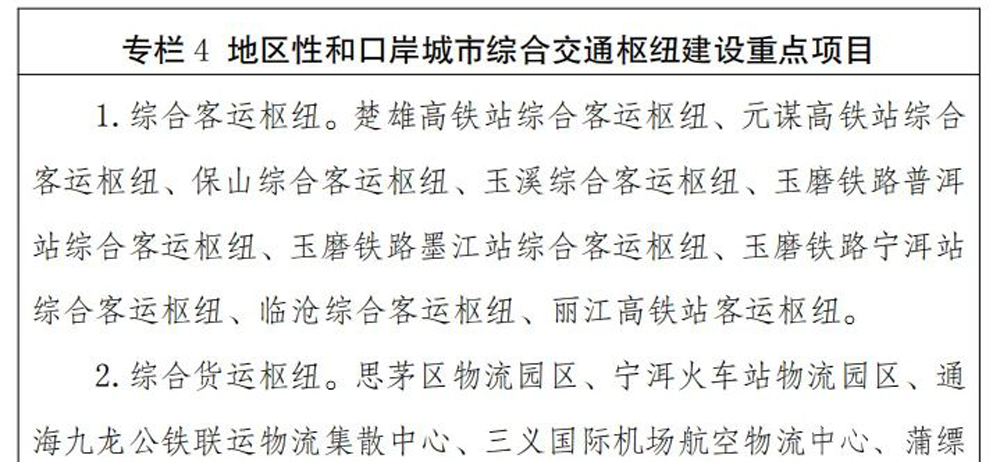 昆明長水綜合交通樞紐、宣威機(jī)場綜合客運(yùn)樞紐、芒市綜合客運(yùn)站樞紐等項(xiàng)目正在加快前期工作。