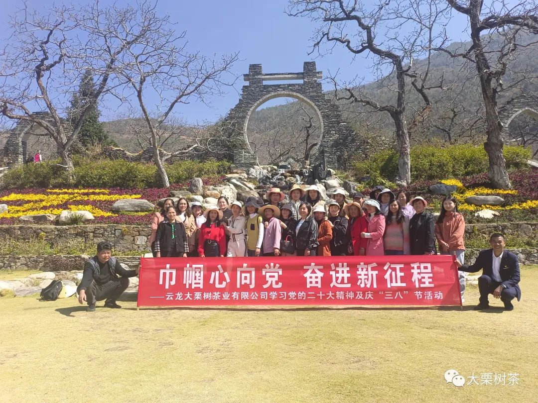 3月8日,大理州企業家協會副會長單位——云龍大栗樹茶業有限公司組織企業女職工到漾濞縣云上村莊、石門關開展學習黨的二十大精神及慶“三八”節活動。