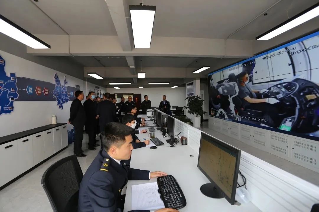 在“兩客一危”車輛衛(wèi)星動(dòng)態(tài)監(jiān)控中心,周鉍祿總隊(duì)長一行通過現(xiàn)場察看衛(wèi)星動(dòng)態(tài)監(jiān)控平臺與聽取講解,全面了解了集團(tuán)公司車輛衛(wèi)星動(dòng)態(tài)監(jiān)控平臺對營運(yùn)車輛的安全監(jiān)控。周鉍祿總隊(duì)長指出,在保障人民群眾安全出行方面,行業(yè)管理部門和企業(yè)要做好聯(lián)動(dòng),及時(shí)監(jiān)督和糾正駕駛?cè)说牟话踩袨椋瑥脑搭^上對風(fēng)險(xiǎn)進(jìn)行管控,預(yù)防事故的發(fā)生,做到安全發(fā)展,人民至上。