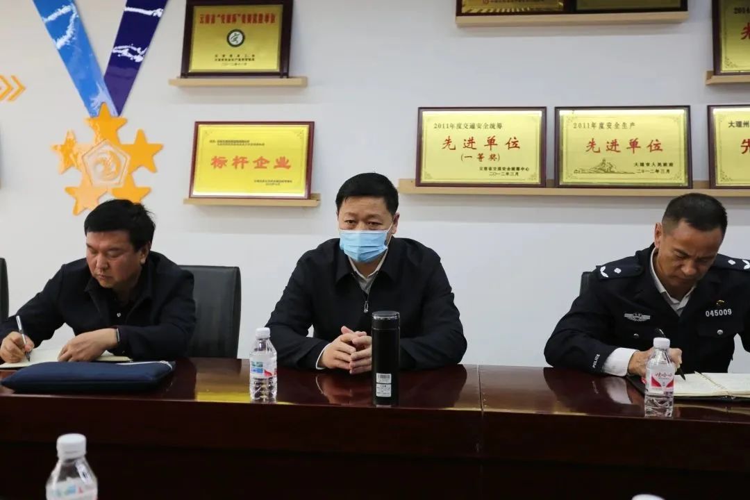 為進(jìn)一步做好全國“兩會(huì)”期間安全維穩(wěn)工作,云南省交警總隊(duì)周鉍祿總隊(duì)長在大理州交警支隊(duì)長張嘉杰以及行業(yè)管理部門相關(guān)領(lǐng)導(dǎo)的陪同下,到大理州企業(yè)家協(xié)會(huì)常務(wù)副會(huì)長單位——大理交通運(yùn)輸集團(tuán)公司對安全生產(chǎn)工作進(jìn)行調(diào)研指導(dǎo)。