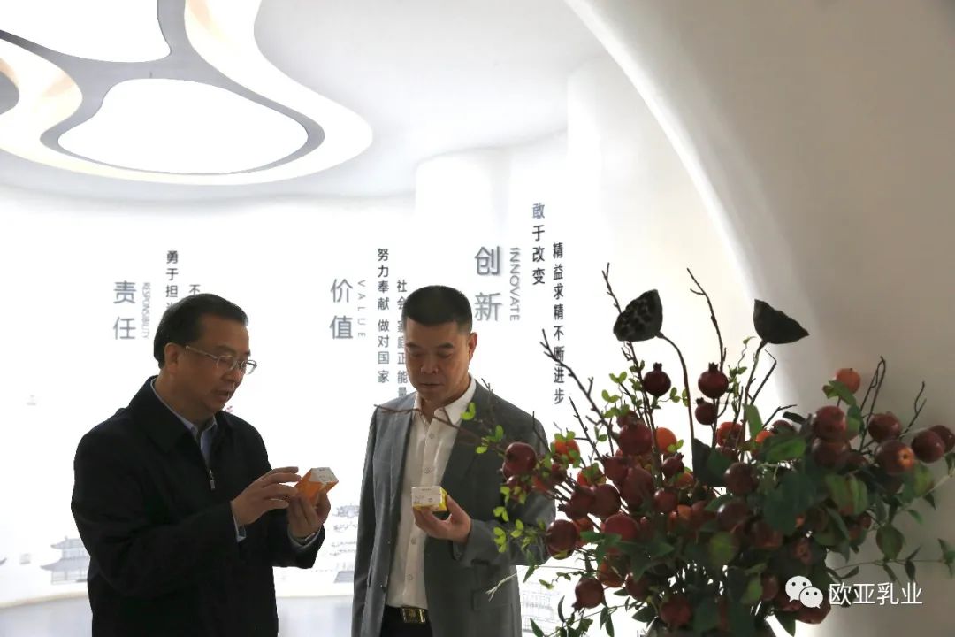 在產品展廳,劉主席一行對歐亞乳業綠色、有機的多元化系列產品給予了充分的肯定,他強調,要踏踏實實辦好企業,帶動更多的貧困群眾共奔小康,促進創新、增加就業、改善民生。