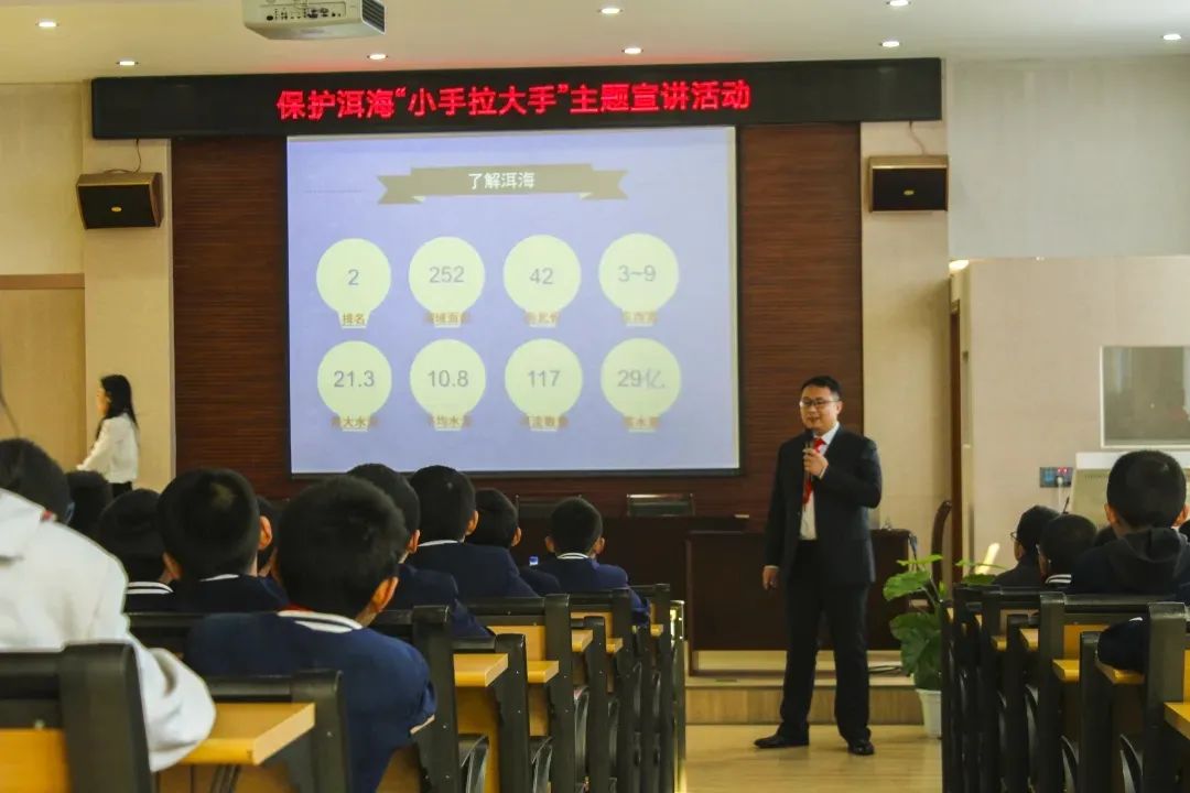 保護洱海,從小做起。大理州企業家協會副會長單位——大理恒華商貿有限責任公司發展不忘感黨恩,積極履行社會責任,倡導青少年從小做起、強健體魄、愛我家園、積極參與洱海保護。去年11月,首次在下關一小、下關八小開展“保護洱海進校園”活動,受到社會一致好評。今年3月31日,在李建兵董事長公益理念的倡導下,公司副總經理趙曦和工會主席李玉紅代表公司協同洱海管理局再一次走進這兩所學校開展“保護洱海進校園”活動。